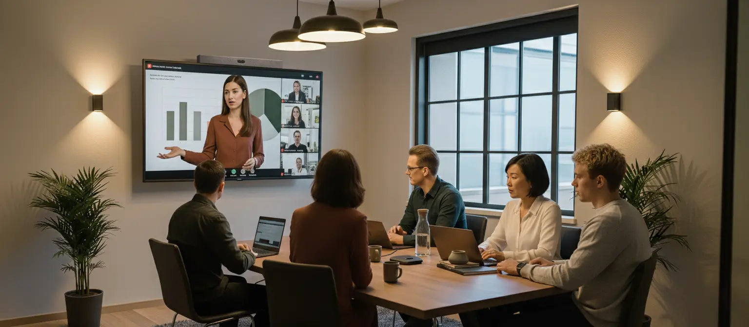 Vi leverer alt fra enkle møteromsløsninger til avanserte AV-installasjoner for konferanserom, auditorier og undervisningslokaler. Våre løsninger inkluderer skjermer, prosjektorer, lydanlegg, videobarer, kontrollsystemer og tilpassede oppsett etter behov.